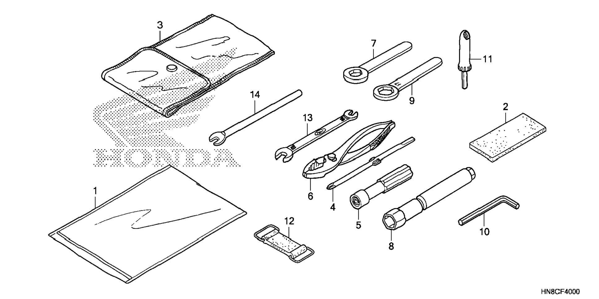 | 7 | 89211-HE0-670 / 45-55 дней | Wrench, eye (14mm) | 1 | 941 р. |