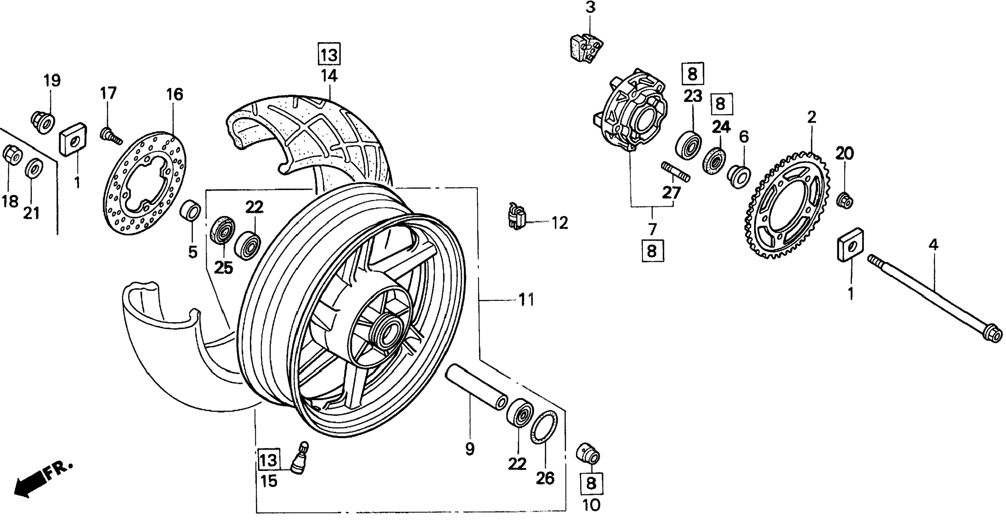 | 14 | 42711-MAS-043 | Tire, rr. (180/55-zr17) (bt56r) (bs) | 1 | Узнать цены |