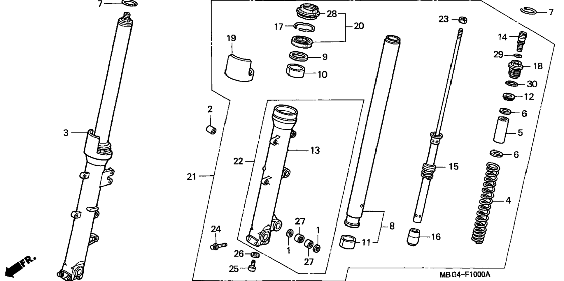 21 51500-MBG-003 Fork assy., l. fr. (showa) 1 Узнать цены