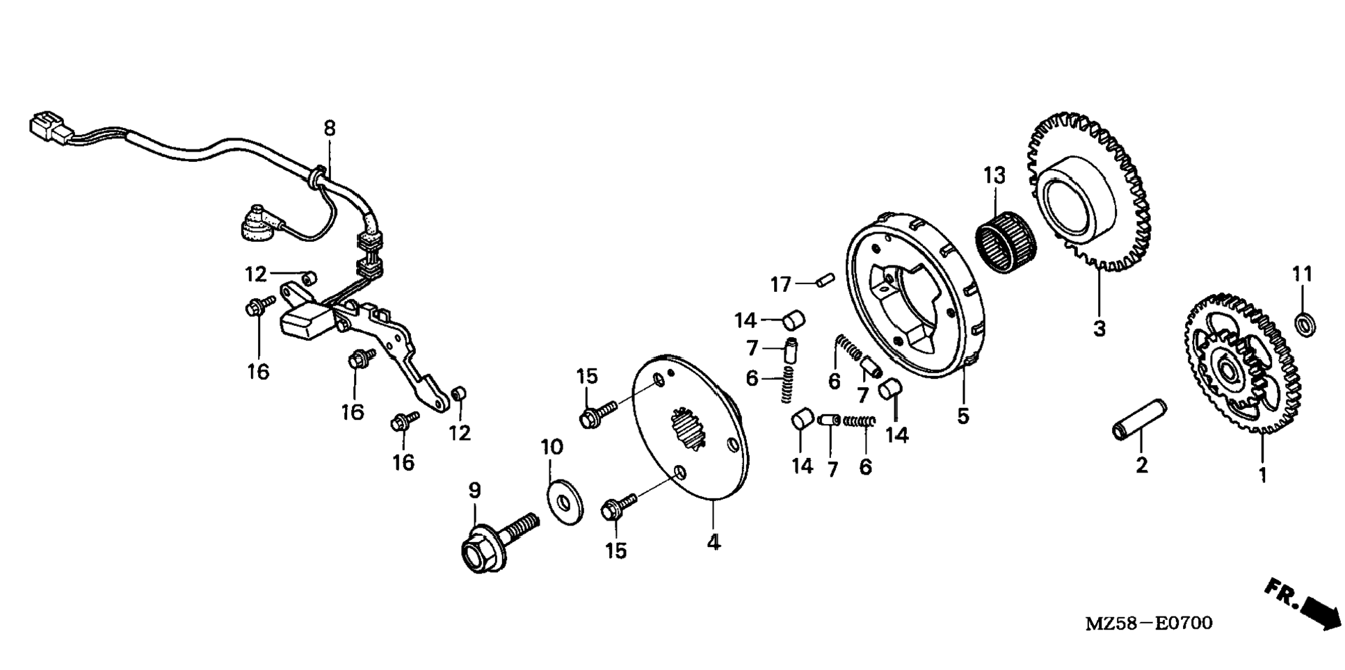 | 5 | 28120-MZ5-000 | Clutch, starter (outer) | 1 | Узнать цены |