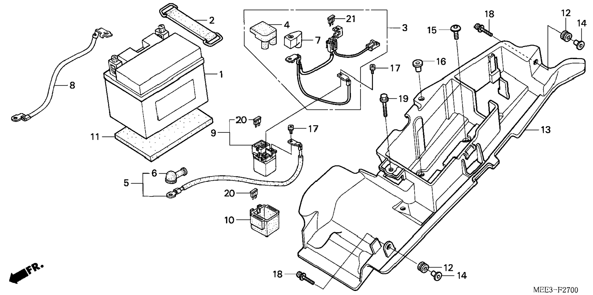 | 13 | 80110-MEE-610 | Tray, battery | 1 | Узнать цены |