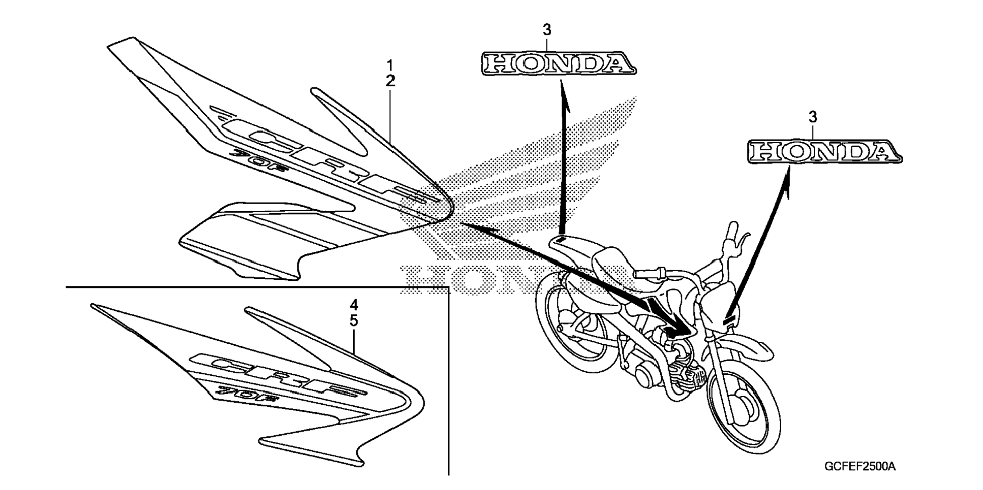 | 5 | 87127-GCF-610ZA | Stripe, l. tank shroud (type1) | 1 | Узнать цены |