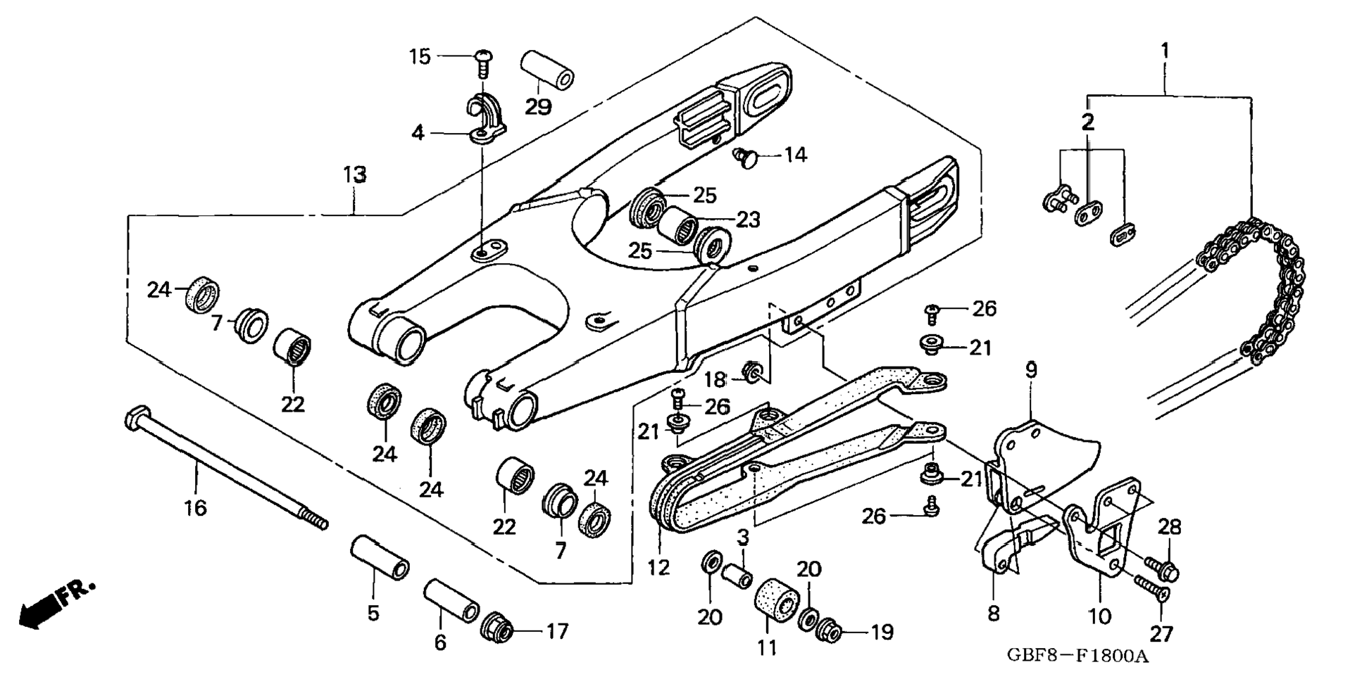 13 52200-GBF-J00 Swingarm sub-assy., rr. 1 Узнать цены