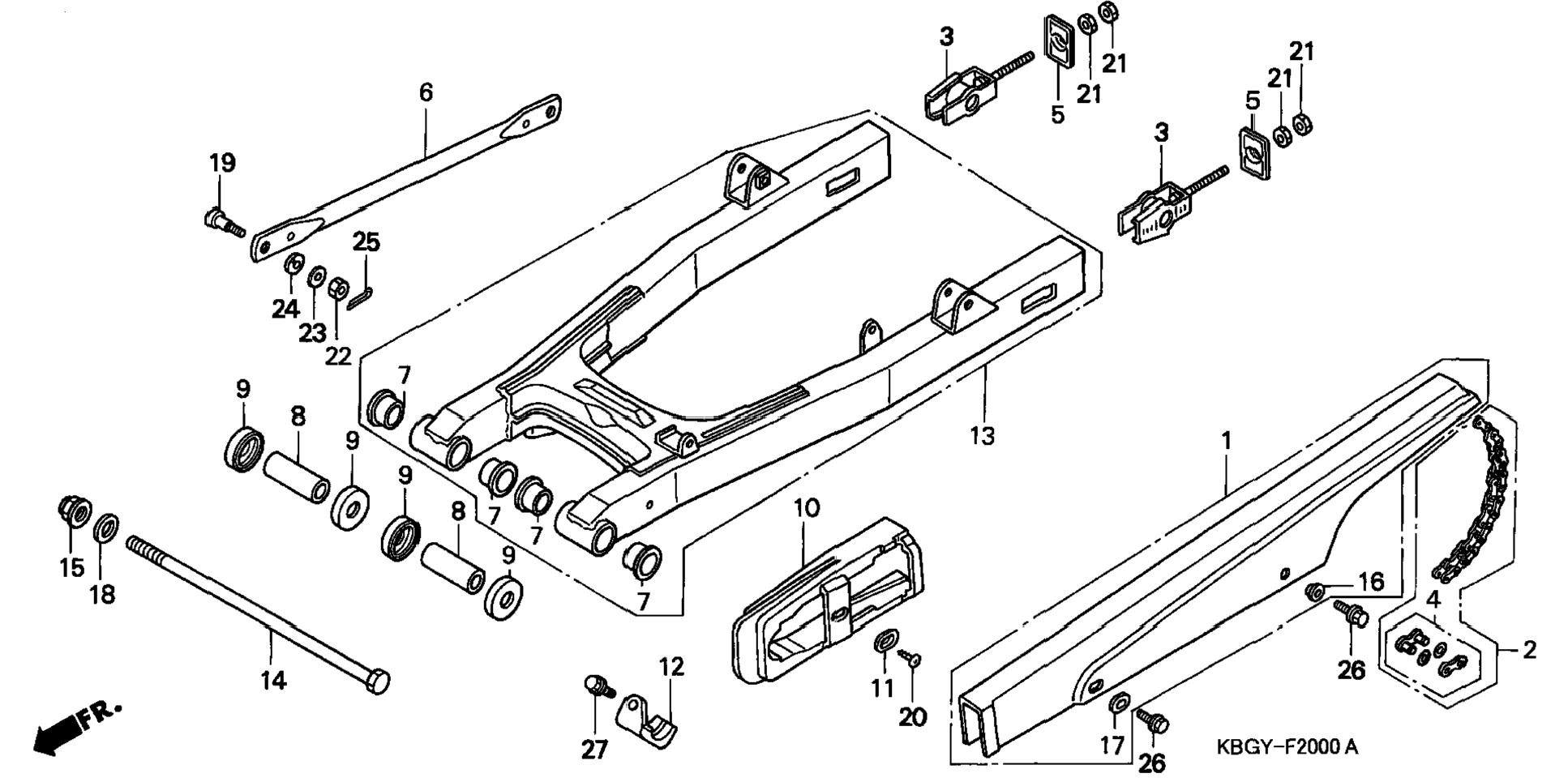 13 52200-KBG-305 Swingarm sub-assy., rr. 1 Узнать цены