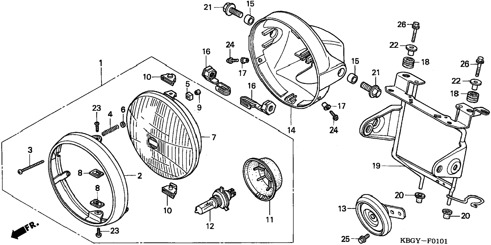 | 19 | 61311-KBG-010 | Stay, headlight | 1 | Узнать цены |