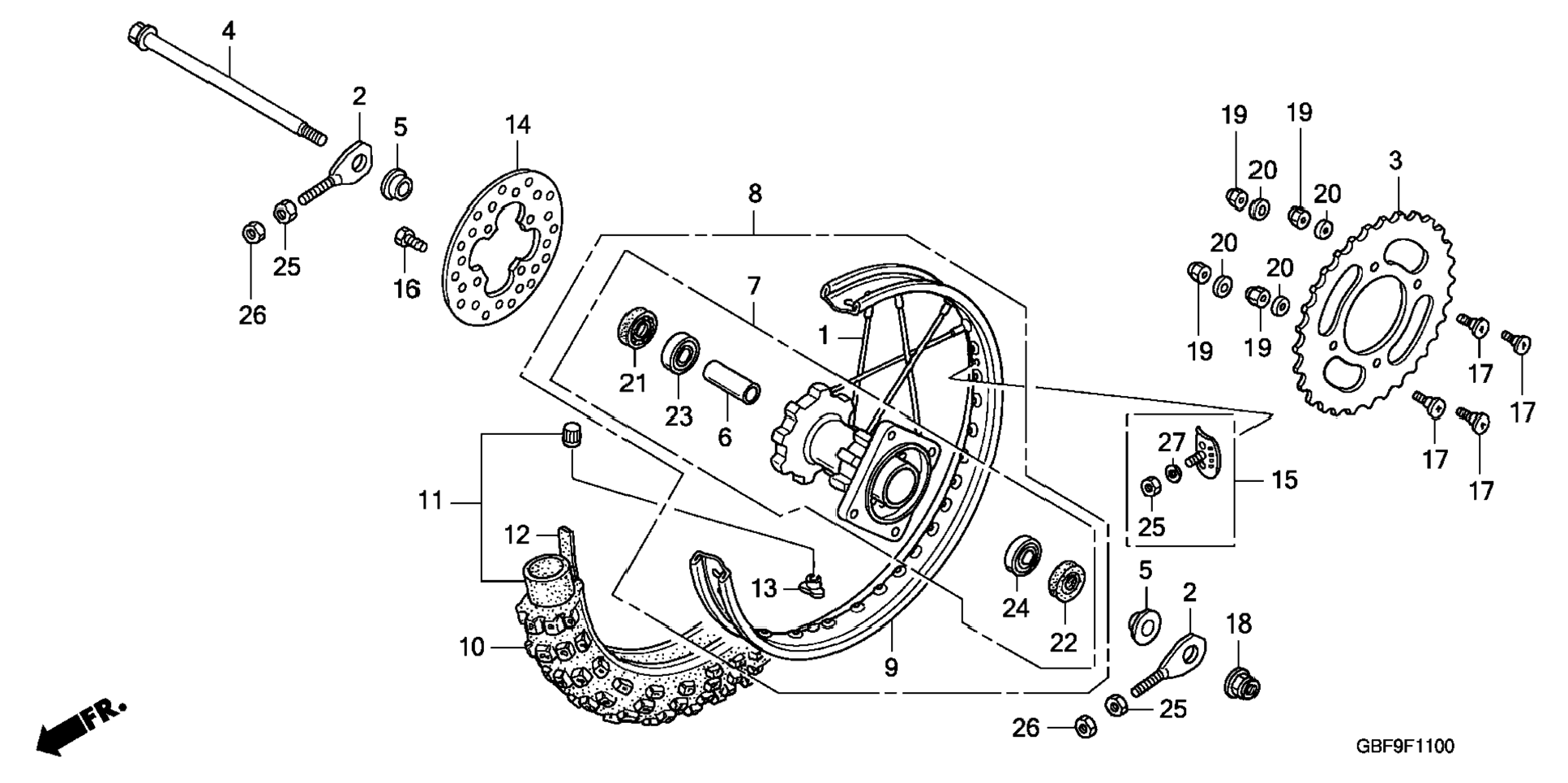 | 9 | 42701-GBF-862 | Rim, rr. wheel | 1 | Узнать цены |