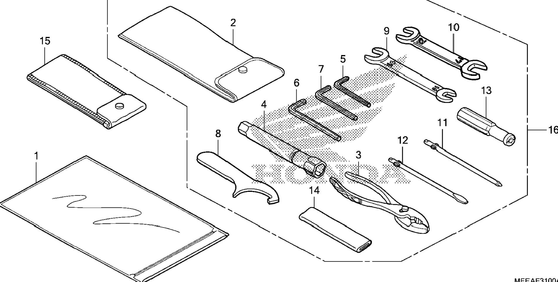 | 2 | 89101-MC7-000 | Bag, tool | 1 | Узнать цены |