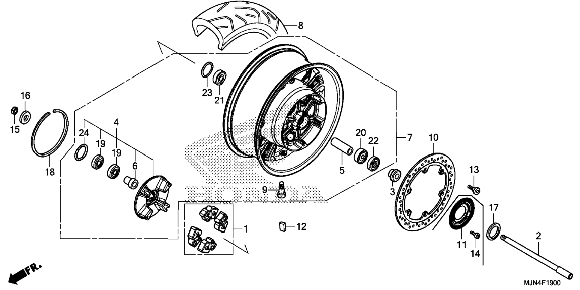 | 2 | 42301-MJN-A00 / 45-55 дней | Axle, rr. wheel | 1 | 7 328 р. |