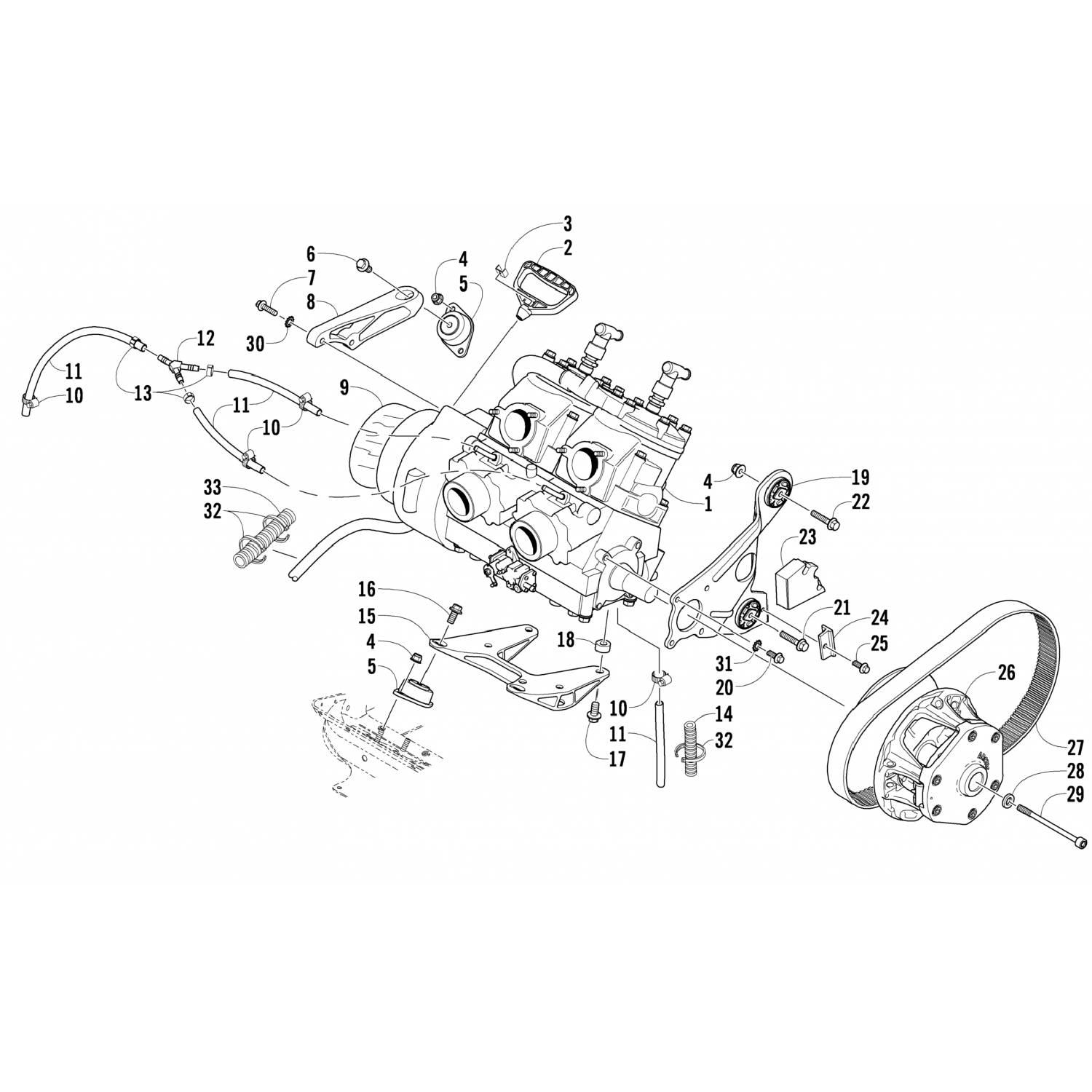 Arctic Cat / Снегоходы / 2001 / PANTERA 1000 (S2001PTLCAUSL) / ENGINE AND RELATED PARTS