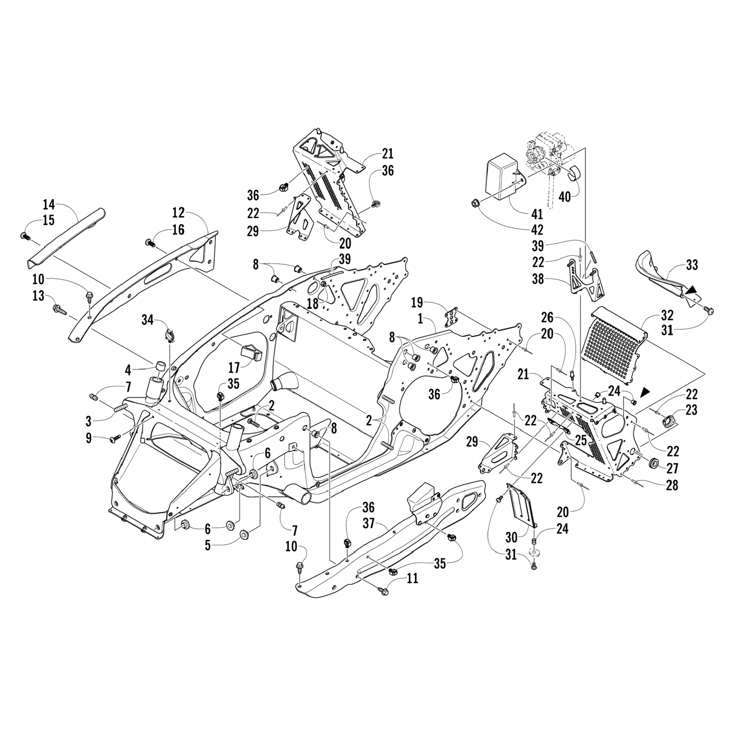 Arctic Cat / Снегоходы / 2008 / M8 EFI 153 SNO PRO NIGHTFIRE (S2008M8HNFUSB) / FRONT FRAME AND FOOTREST ASSEMBLY