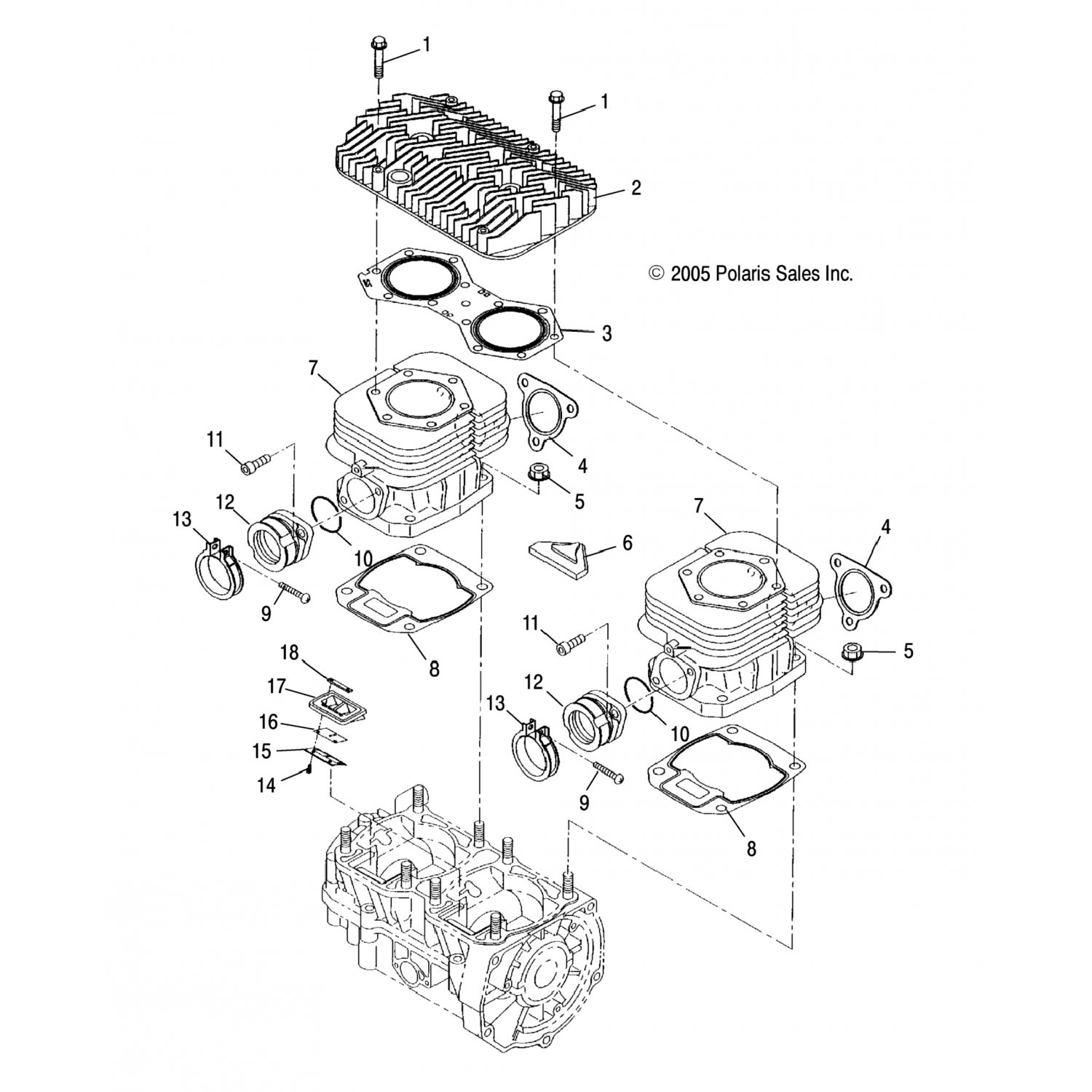 Polaris / Снегоходы / 2018 / 550 INDY/INTL (S18CBA5BSA/BSL/BEL) / Engine, Cylinder S18cba5bs/5Be All Options
