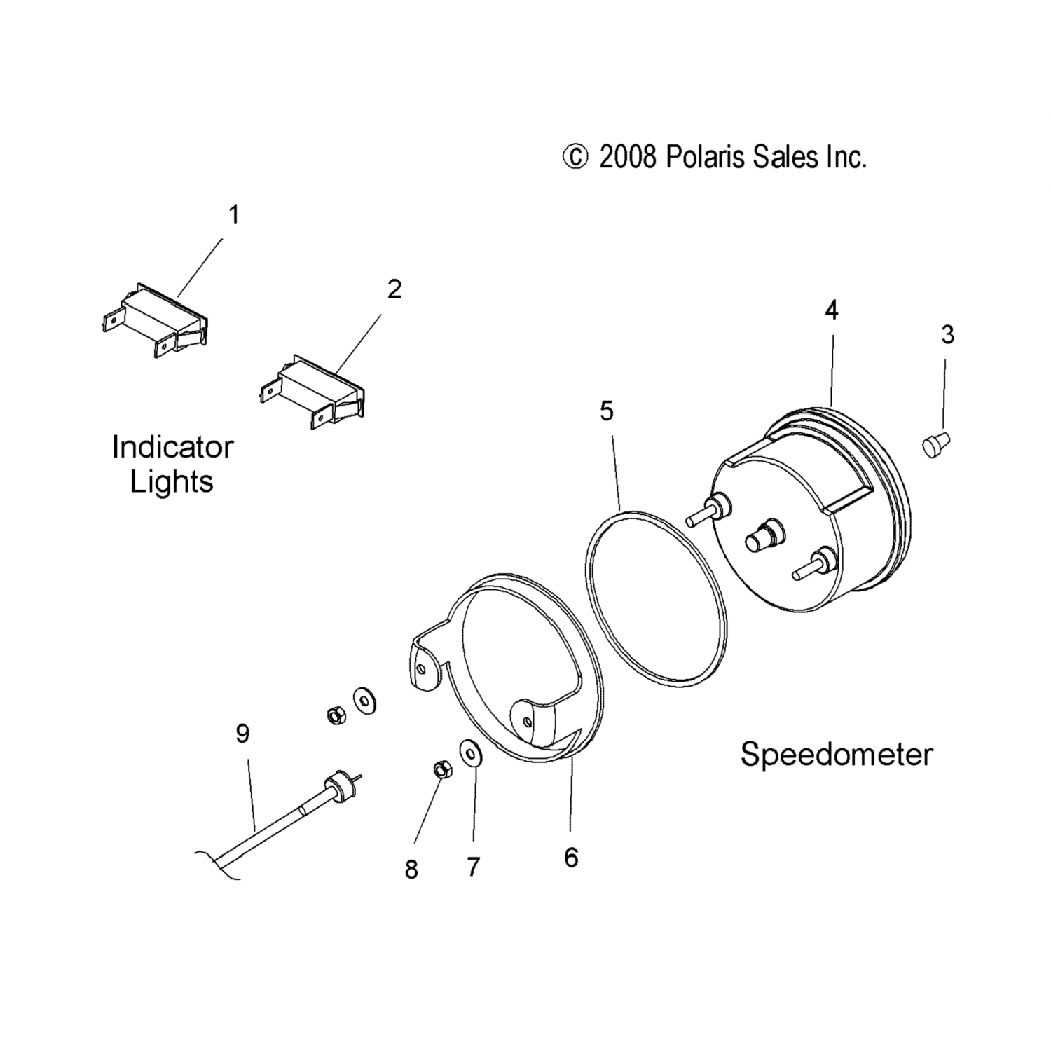 Polaris / Снегоходы / 2009 / TRAIL TOURING/FLEET/TRANSPORT/EURO (S09NT5BS/BE/BSF/NU5BS/BE) / Electrical, Speedometer & Indicator Lights