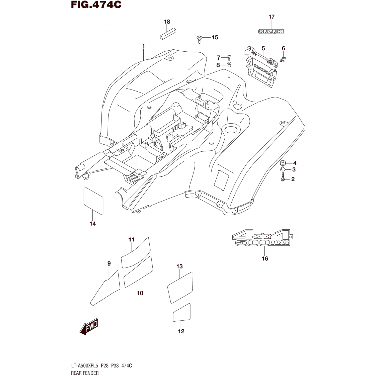 Suzuki / Квадроциклы (ATV) / 2015 / LT-A500XPZ / REAR FENDER (LT-A500XPZL5 P28)