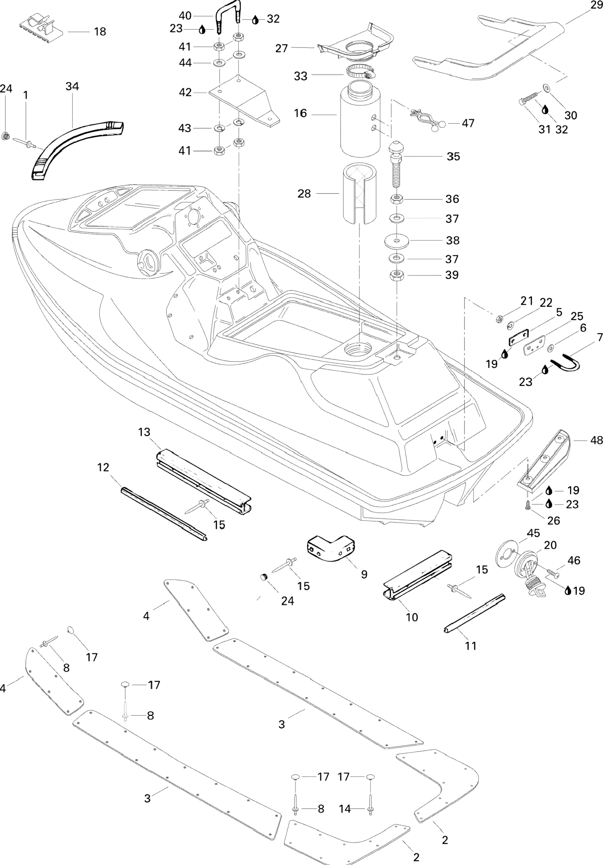 Body, Rear View для Sea-Doo XP, 5858 1996 г.