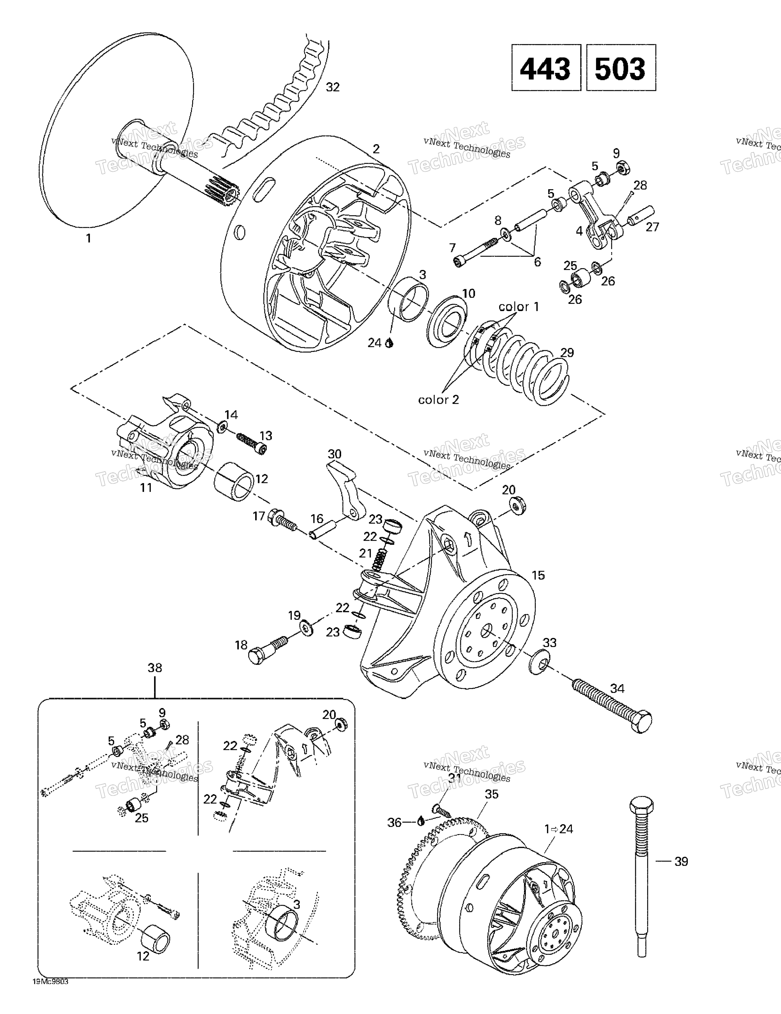 Drive Pulley (443, 503) для Ski-Doo Touring E 1998 г.