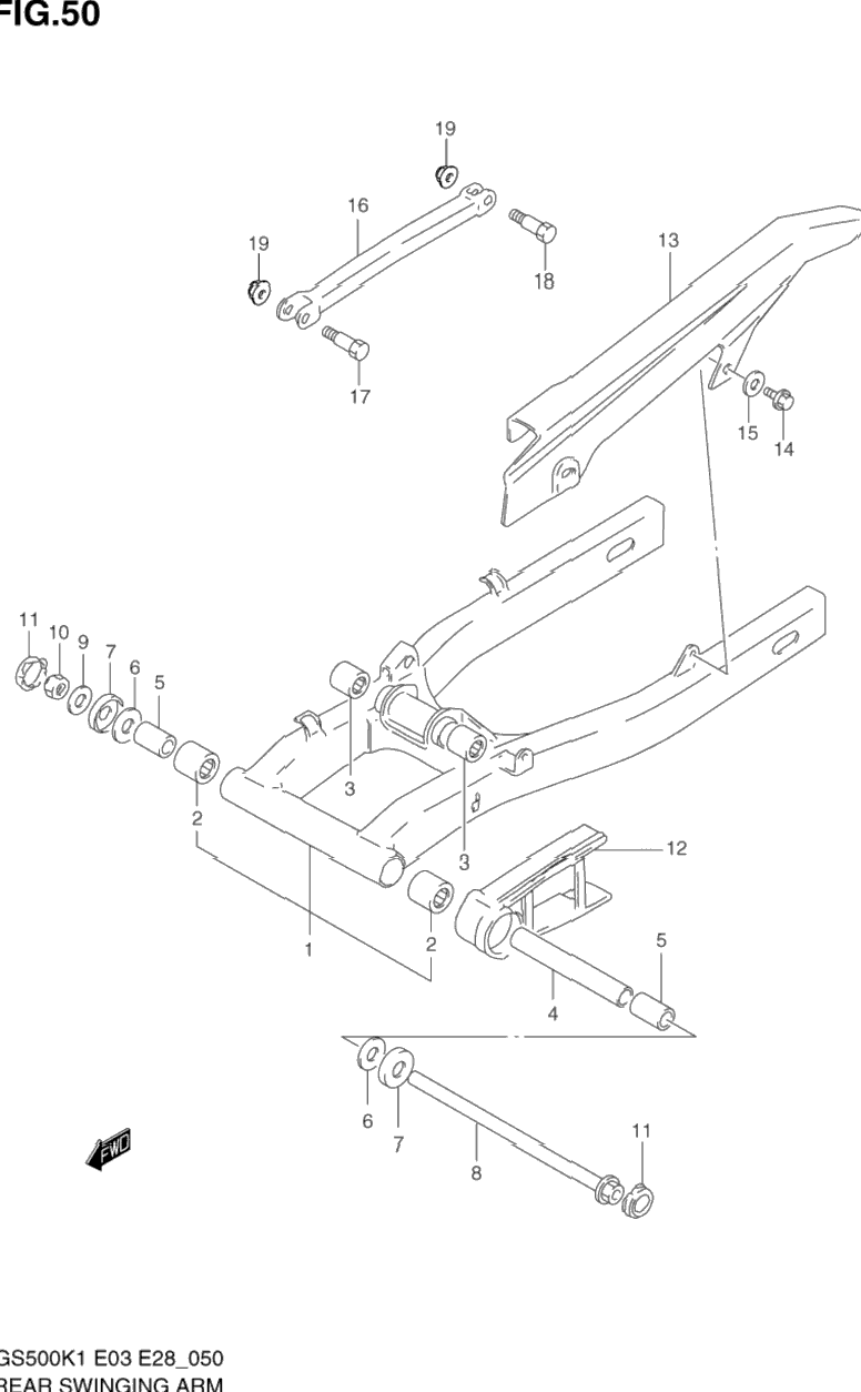 | 8 | 61211-30B00 | Shaft, swinging arm pivot | 1 | Узнать цены |