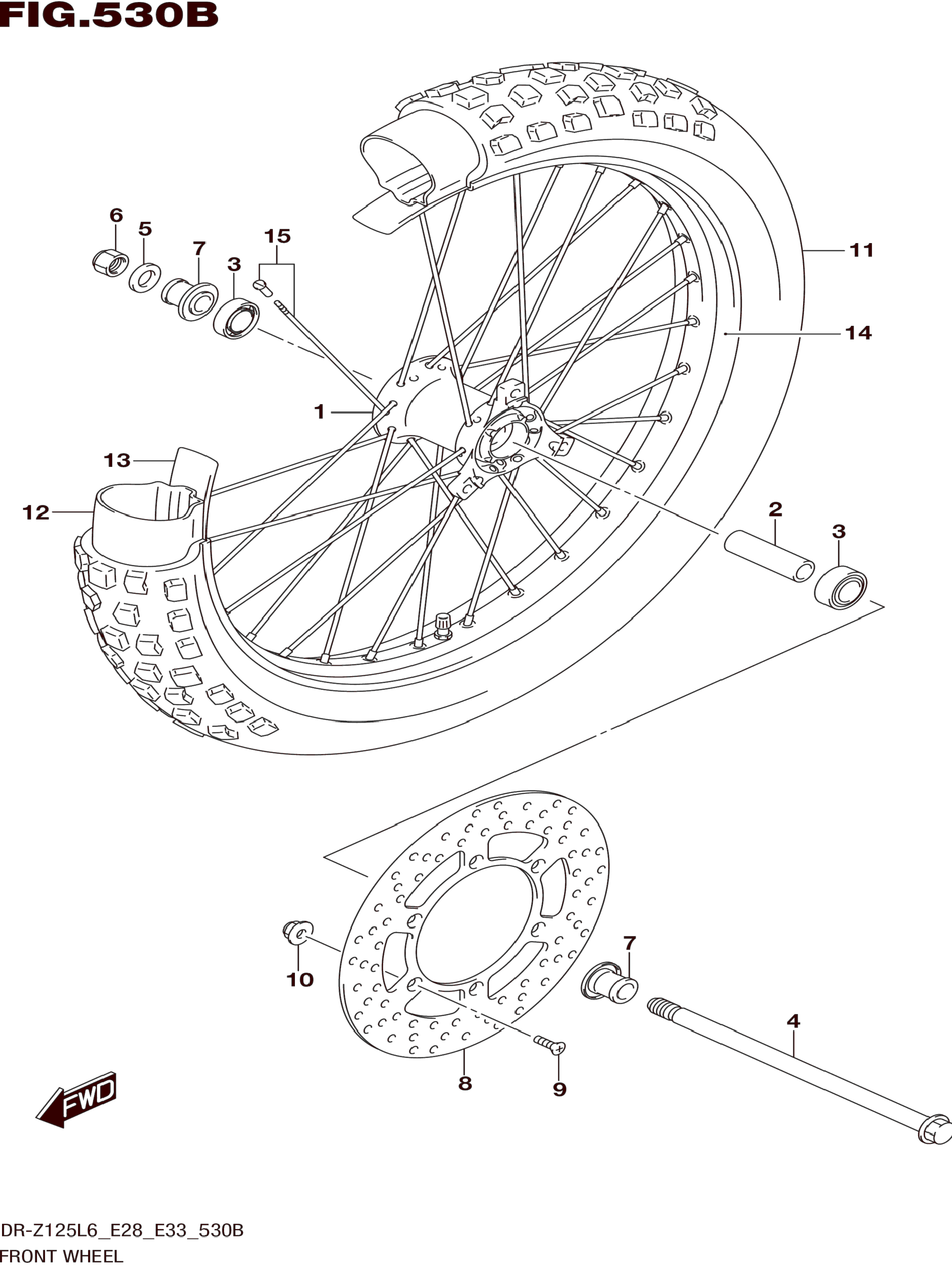 FRONT WHEEL (DR-Z125LL6 E28) для Suzuki DR-Z125 2016 г.