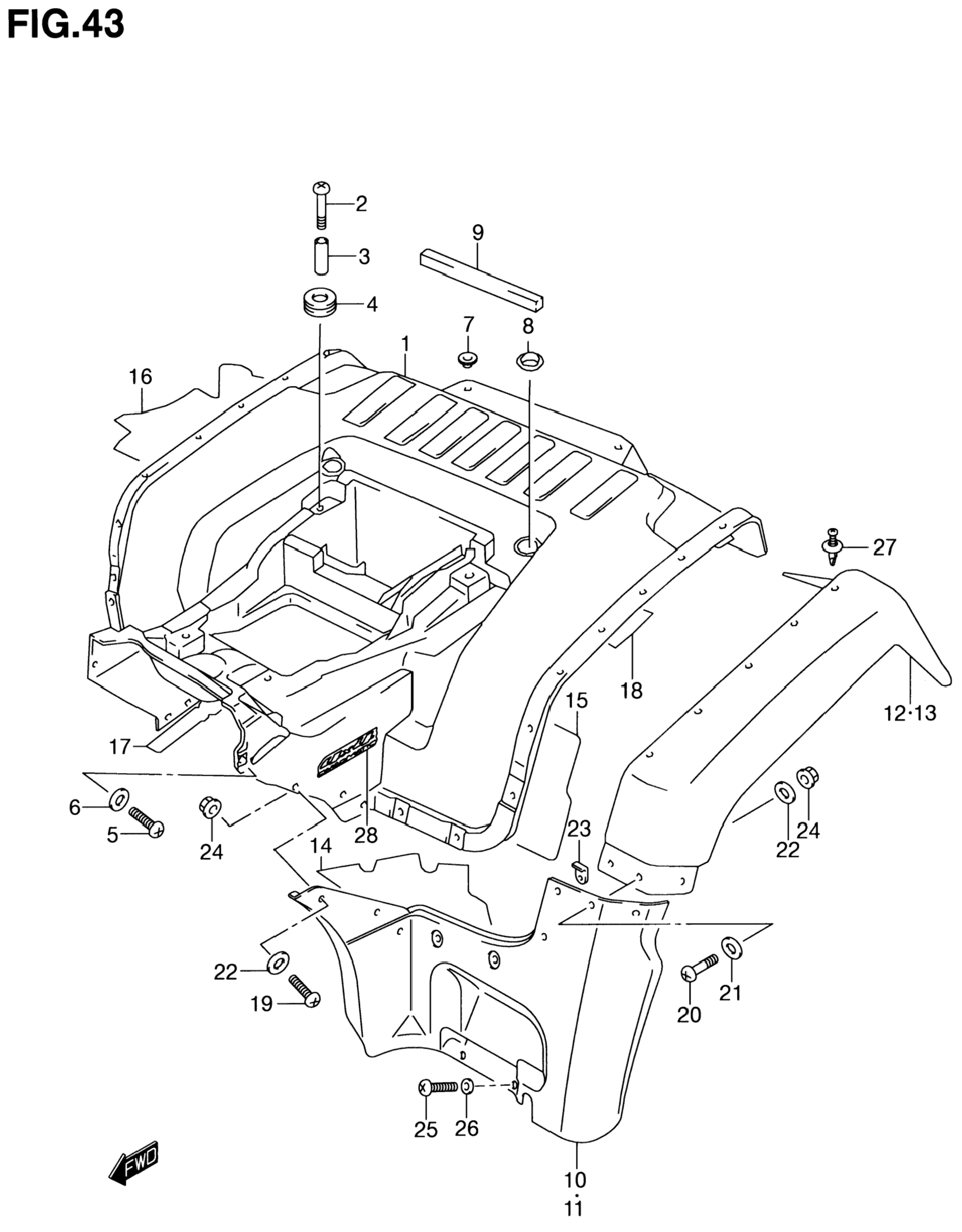 | 15 | 63263-09F10 | Shield, rear fender | 1 | Узнать цены |